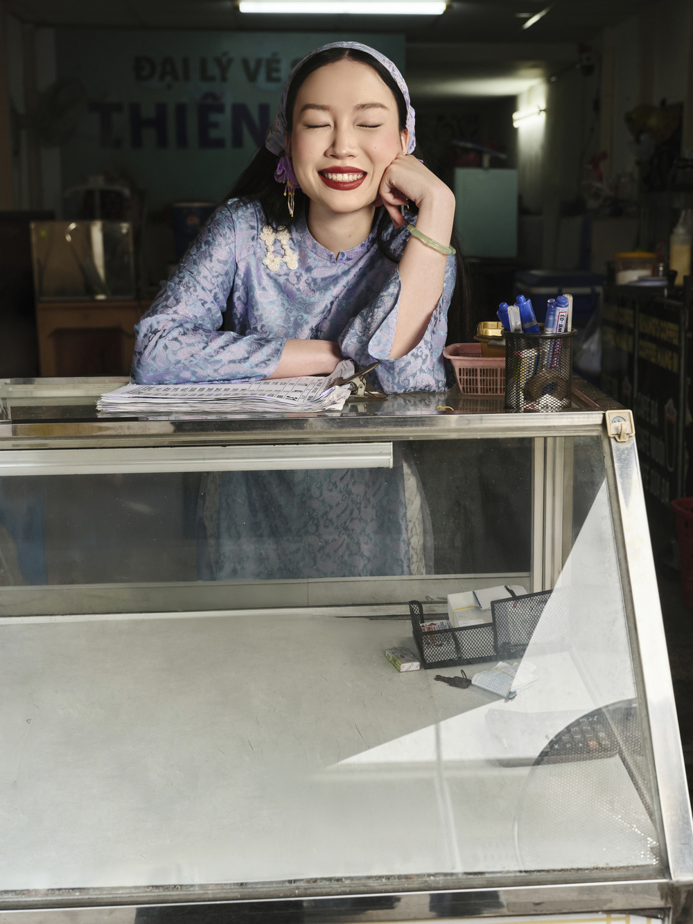 Chất liệu lụa của nhà mốt Việt có ưu điểm ít nhăn và khả năng thấm hút mồ hôi tốt nên không chỉ phù hợp cho những khoảnh khắc chụp ảnh hay nghi lễ, mà còn đáp ứng các hoạt động thường ngày như di chuyển nhiều, tiếp khách, làm việc nhà, hoặc đơn giản là diện trong một ngày cà phê thường nhật.