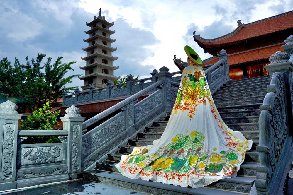 Anh không ngừng kết hợp cùng các nghệ nhân làng nghề, đưa kỹ thuật thêu, vẽ, kết cườm truyền thống vào xu hướng thiết kế mới, giúp áo dài Việt bước ra thế giới mà vẫn giữ trọn linh hồn dân tộc.