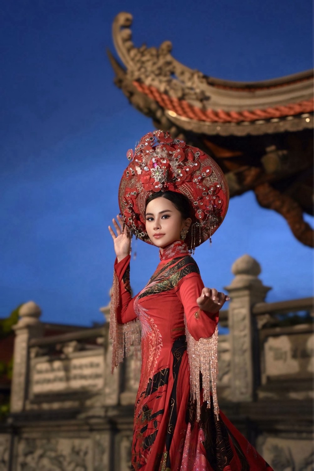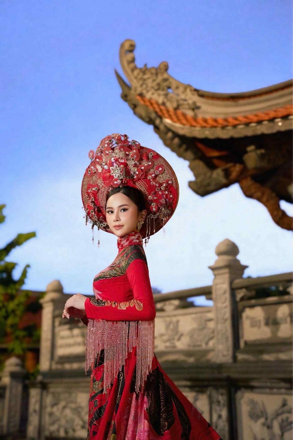 Hóa thân trong những thiết kế đặc sắc đó là Lê Tuyền, Người đẹp Hình thể – Hoa hậu Việt Nam Thời đại 2024. Với gương mặt khả ái và phong thái kiêu sa, cô đã thổi hồn sống động vào từng tà áo.