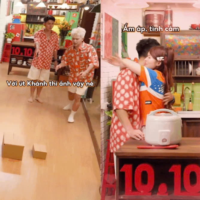 Ngay từ hậu trường, không khí đã “căng như dây đàn”. Nếu anh cả Thuận luôn cố gắng giữ hòa khí, thì Út Khánh và Tư Tâm đúng kiểu “hai quả pháo” chuẩn bị phát nổ bất cứ lúc nào. Cặp chị em liên tục “đấu đá” xem ai mới là người được anh cả Thuận ưu ái hơn. Cứ mỗi lần hai người này sáp lại là Jun Phạm lại phải ôm đầu than trời vì độ ồn vượt ngưỡng chịu đựng.
