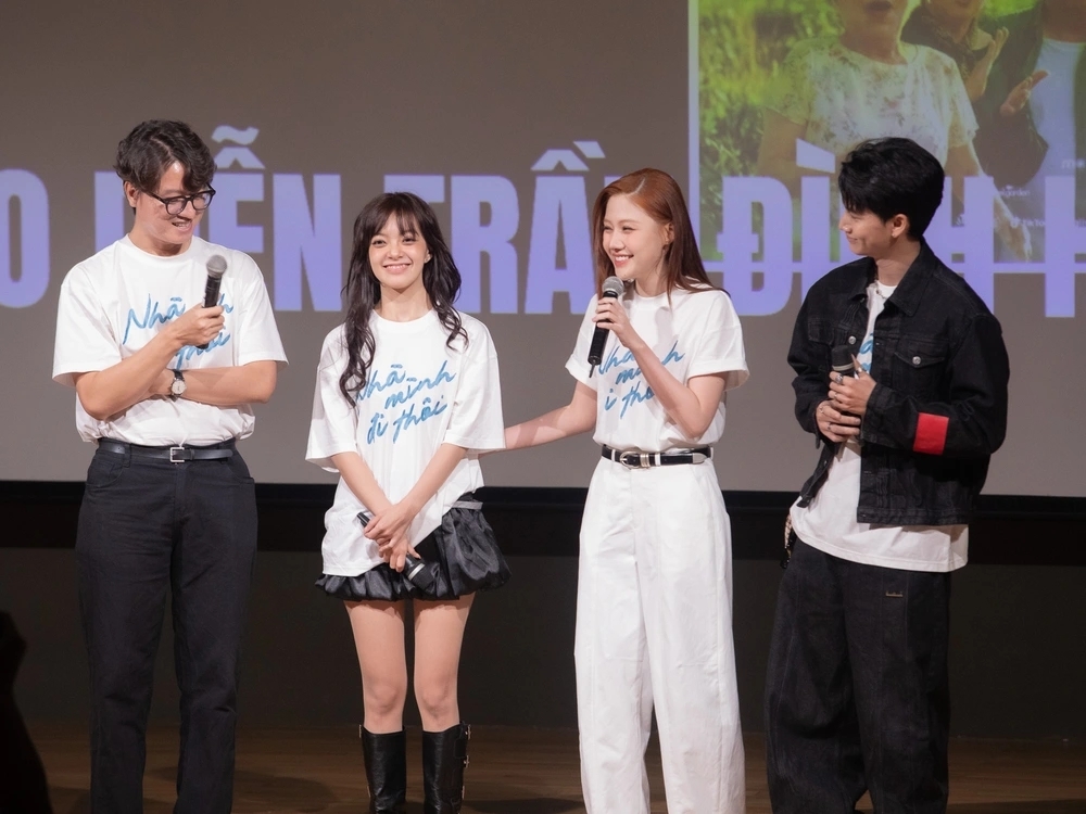 Trong hành trình quảng bá cho dự án điện ảnh "Nhà mình đi thôi", dàn diễn viên đã trực tiếp gặp gỡ sinh viên tại Trường Đại học Quốc tế Hồng Bàng (HIU) và Đại học Quốc tế Sài Gòn (SIU).