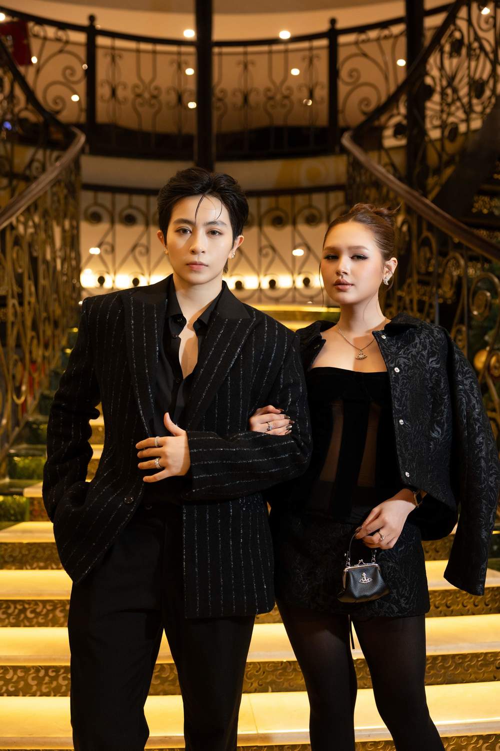 Gil Lê - Xoài Non mặc trang phục đen đồng điệu.