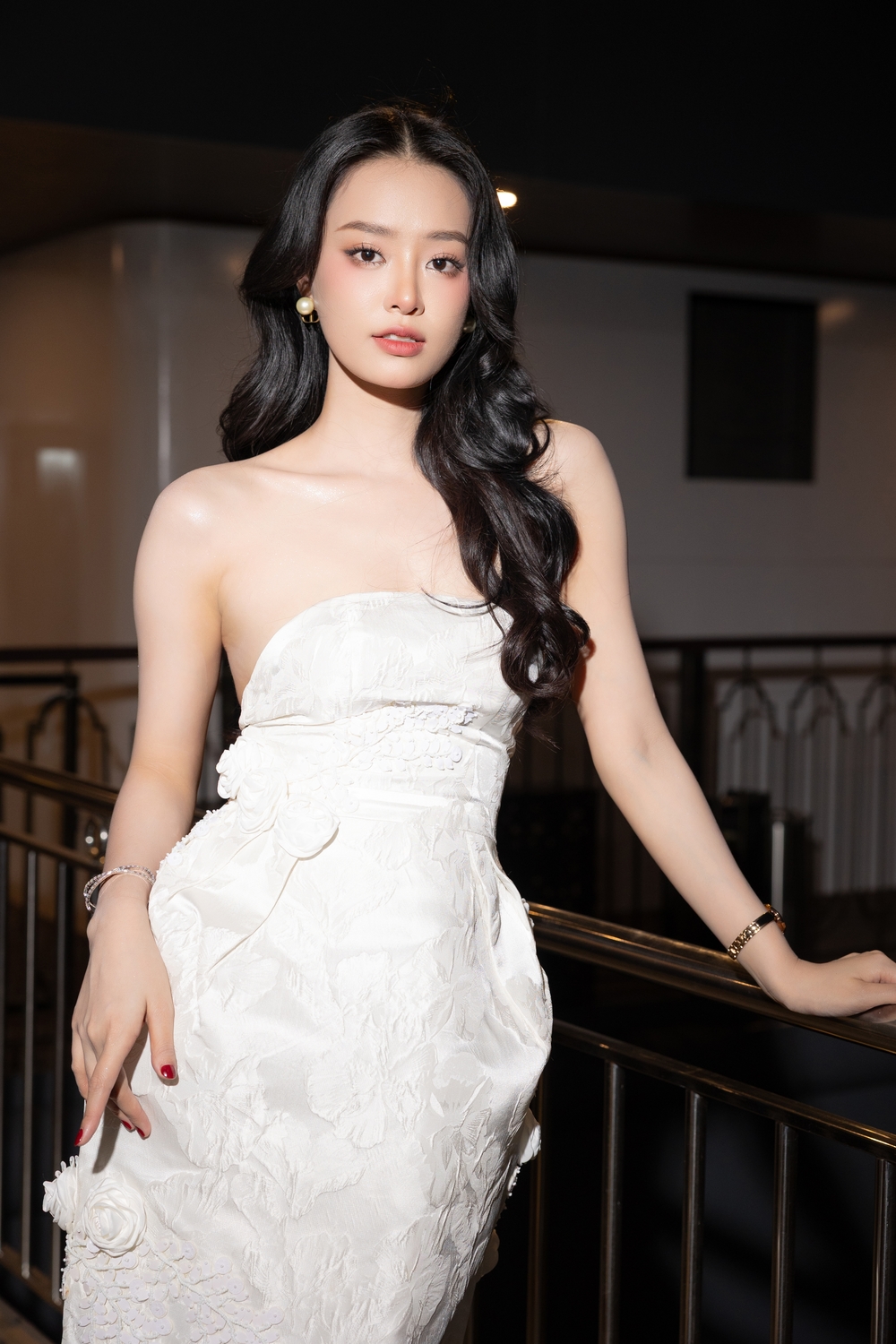 Á hậu Bùi Khánh Linh xuất hiện trong mẫu váy trắng tinh tế.