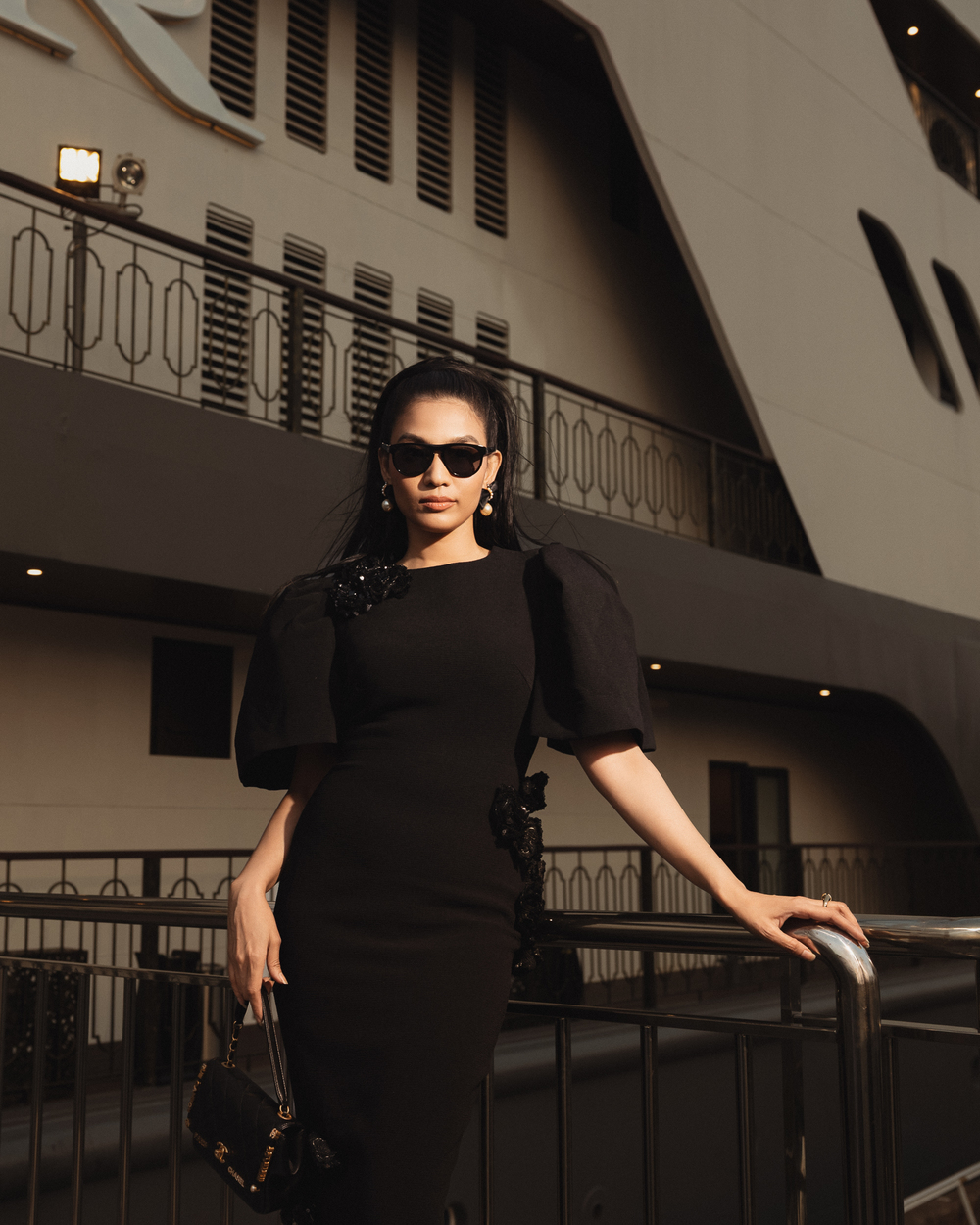 Hoa hậu Trương Thị May cuốn hút trong bộ cánh đen.