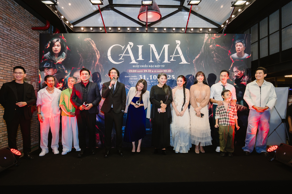 Tối 29/10/2025, ê-kíp "Cải mả" tổ chức buổi công chiếu phim dành cho giới truyền thông và các nghệ sĩ tại TP.HCM. Đạo diễn Thắng Vũ, nhà sản xuất Emily Lê cùng dàn diễn viên đa thế hệ: Hoàng Phúc, Kiều Trinh, Lê Huỳnh, Thạch Kim Long, Hoàng Mèo, siêu mẫu Thúy Hạnh, Avin Lu, Lý Hồng Ân, Kim Hải, Lâm Thanh Nhã… tề tựu tại sự kiện và chia sẻ nhiều cảm xúc đặc biệt. Ngoài dàn diễn viên chính, buổi premiere có sự xuất hiện của: Dàn nam thần “Tử chiến trên không” Trần Ngọc Vàng, Ray Nguyễn, diễn viên Thuận Nguyễn.
