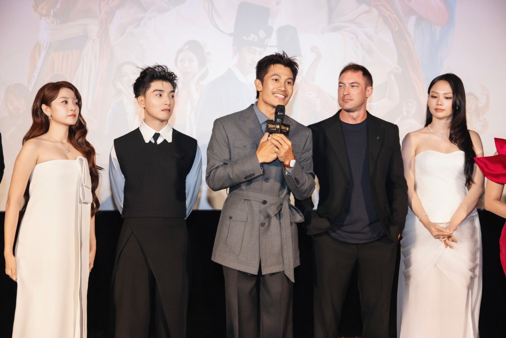 Võ Điền Gia Huy tặng hoa cho bạn diễn Tam Triều Dâng.