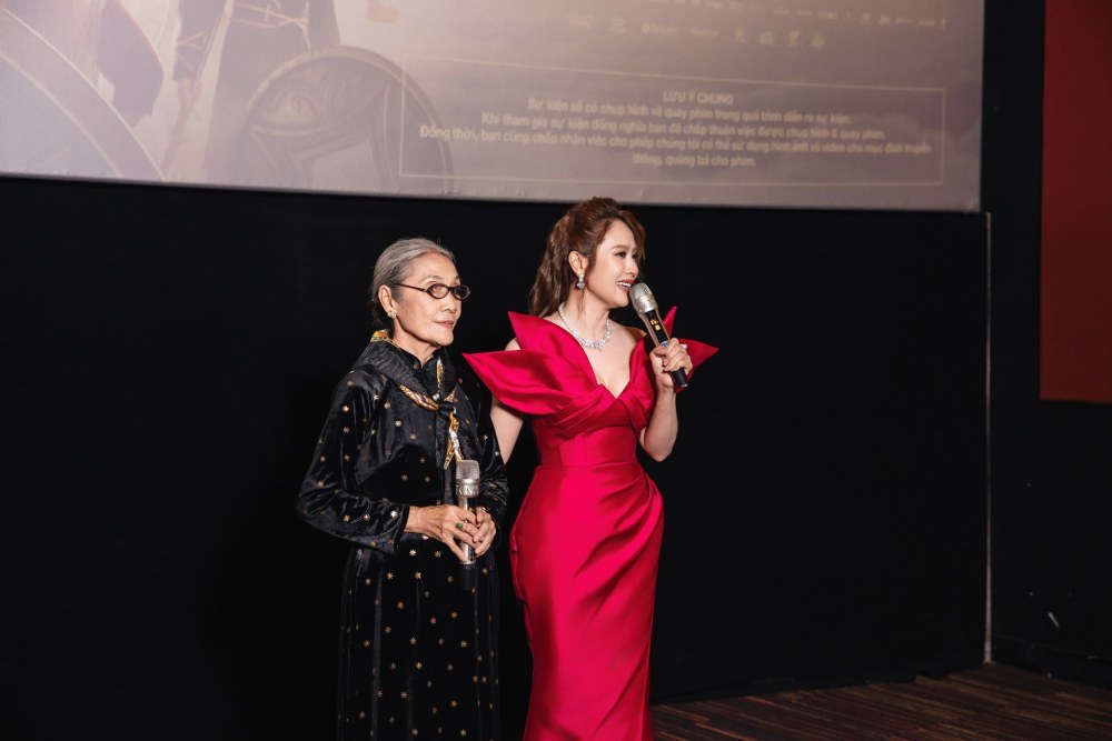 Thanh Thuý và nghệ sĩ Thanh Hiền phát biểu.