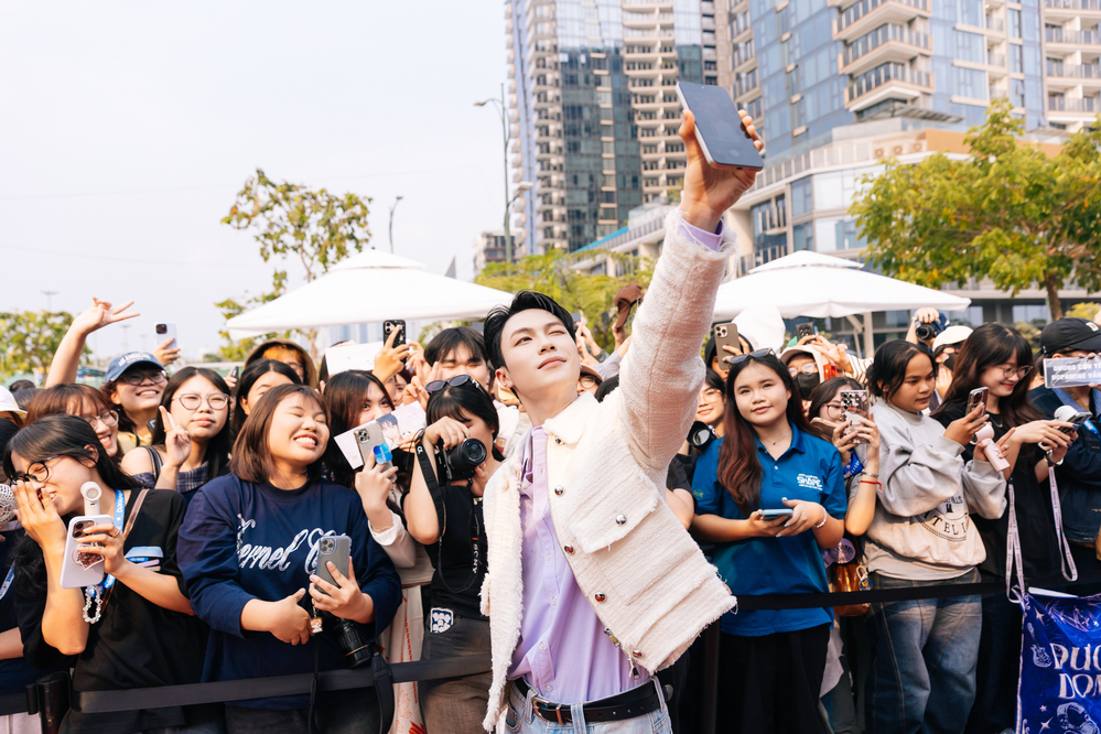 Dương Domic trải nghiệm tính năng Gương Selfie và tự tin “Say Hi” để bắt trọn mọi khoảnh khắc tại sự kiện ra mắt.