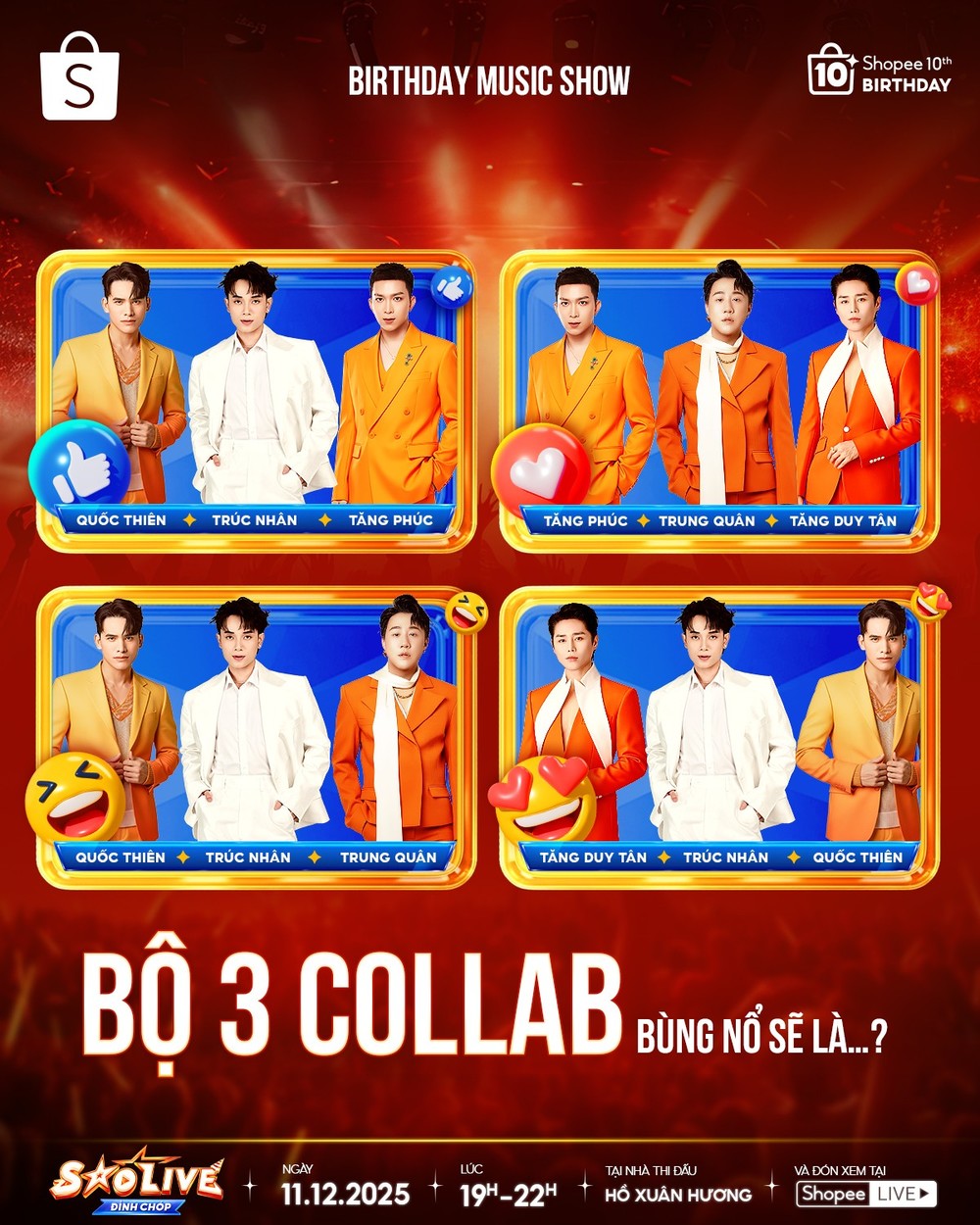 Đêm diễn còn quy tụ toàn những giọng hát nội lực gồm Trúc Nhân, Quốc Thiên, Trung Quân, Tăng Phúc và Tăng Duy Tân. Ngay khi dàn line-up được bật mí, fan đã “xếp hàng” săn vé fanzone để được đứng gần thần tượng. Trong khi đó, cộng đồng người dùng Shopee thì rần rần chuẩn bị tinh thần để thưởng thức một bữa tiệc âm nhạc mãn nhĩ và mãn nhãn.