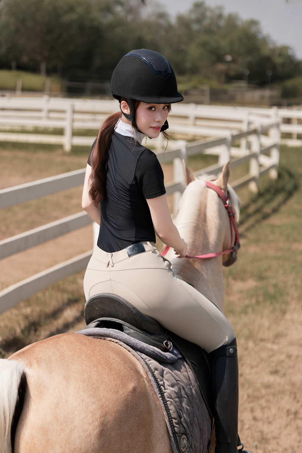 Với người đẹp, đây không chỉ là một hoạt động thể thao mà còn là hành trình khám phá bản thân. Khác với nhiều môn vận động khác, cưỡi ngựa đòi hỏi người tập phải rèn luyện thể lực, khả năng giữ thăng bằng và đặc biệt phải học cách “giao tiếp” và “kết nối” với chú ngựa của mình. Mỗi con ngựa đều có cá tính riêng, vì vậy quá trình luyện tập cũng là lúc nàng hậu 2K2 rèn luyện sự kiên nhẫn và tình cảm kết nối với loài động vật này.