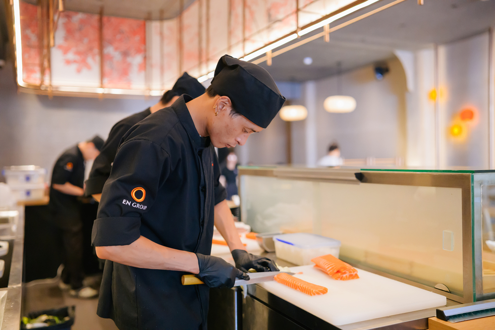 Ka-EN Japanese Grill & Sushi Bar mang đến một trải nghiệm ẩm thực đa giác quan tại Việt Nam. Thực khách được chào đón ngay từ khu vực nướng Robatayaki ngoài trời, nơi các loại thịt và hải sản cao cấp được nướng trực tiếp trên ngọn lửa rực hồng, trước khi bước vào không gian bên trong với quầy Sushi và Sashimi thể hiện kỹ nghệ tinh tế của ẩm thực Nhật Bản cùng những món sushi cuộn cầm tay (handroll) thời thượng được chế biến tại chỗ.