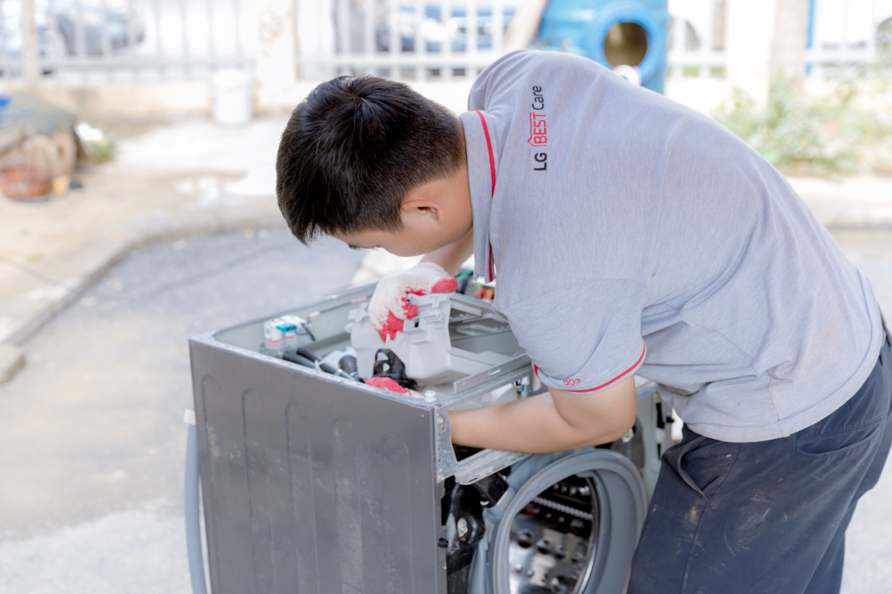 Kỹ thuật viên của LG kiểm tra và vệ sinh đối với các sản phẩm LG bị hư hại