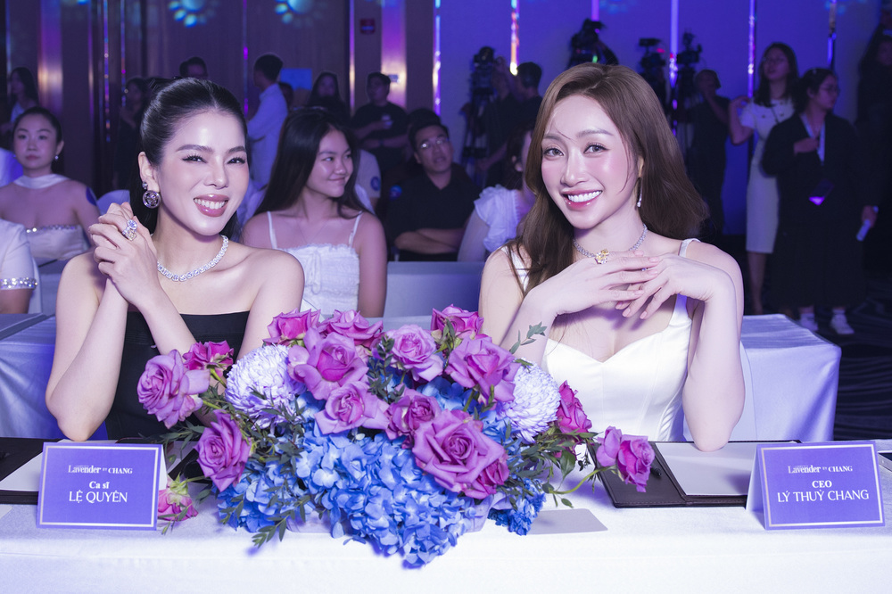 Ca sĩ Lệ Quyên diện đồ tone sur tone cùng Lâm Bảo Châu sánh vai trong sự kiện. Cô diện đầm đen ôm body làm toát lên thần thái sang chảnh mà không kém phần trẻ trung. Trong khi đó Lâm Bảo Châu cũng diện suit cùng tone màu, phong cách lịch lãm vô cùng xứng đôi với bạn gái.