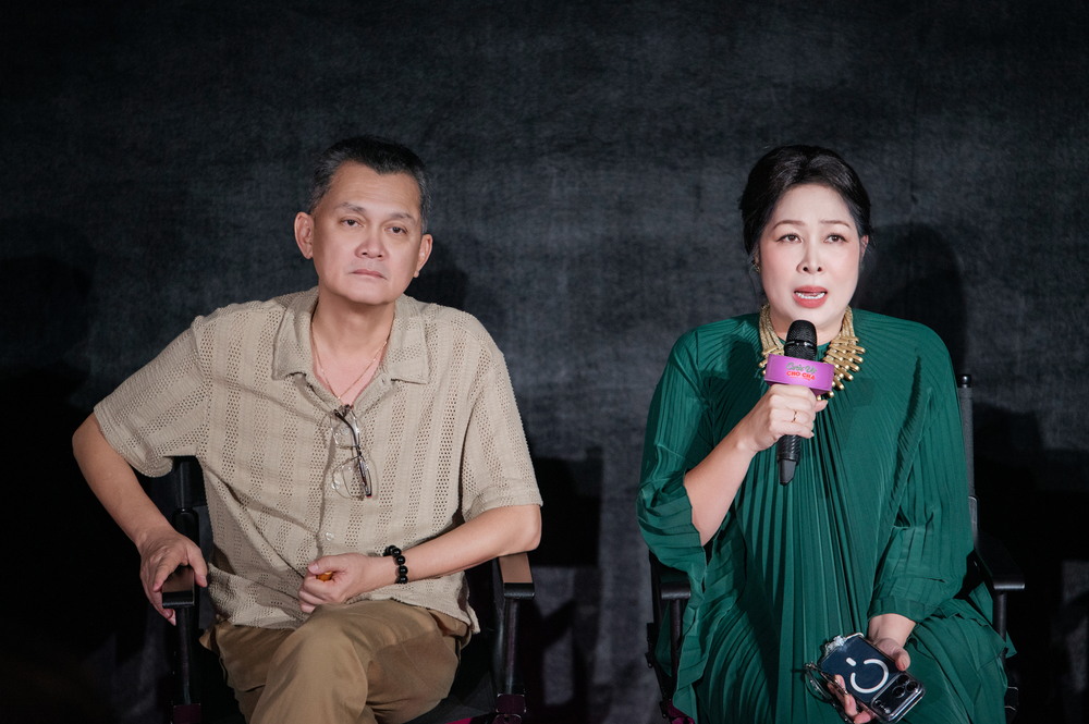 NSƯT Hữu Châu và NSND Hồng Vân chia sẻ tại buổi chiếu sớm.