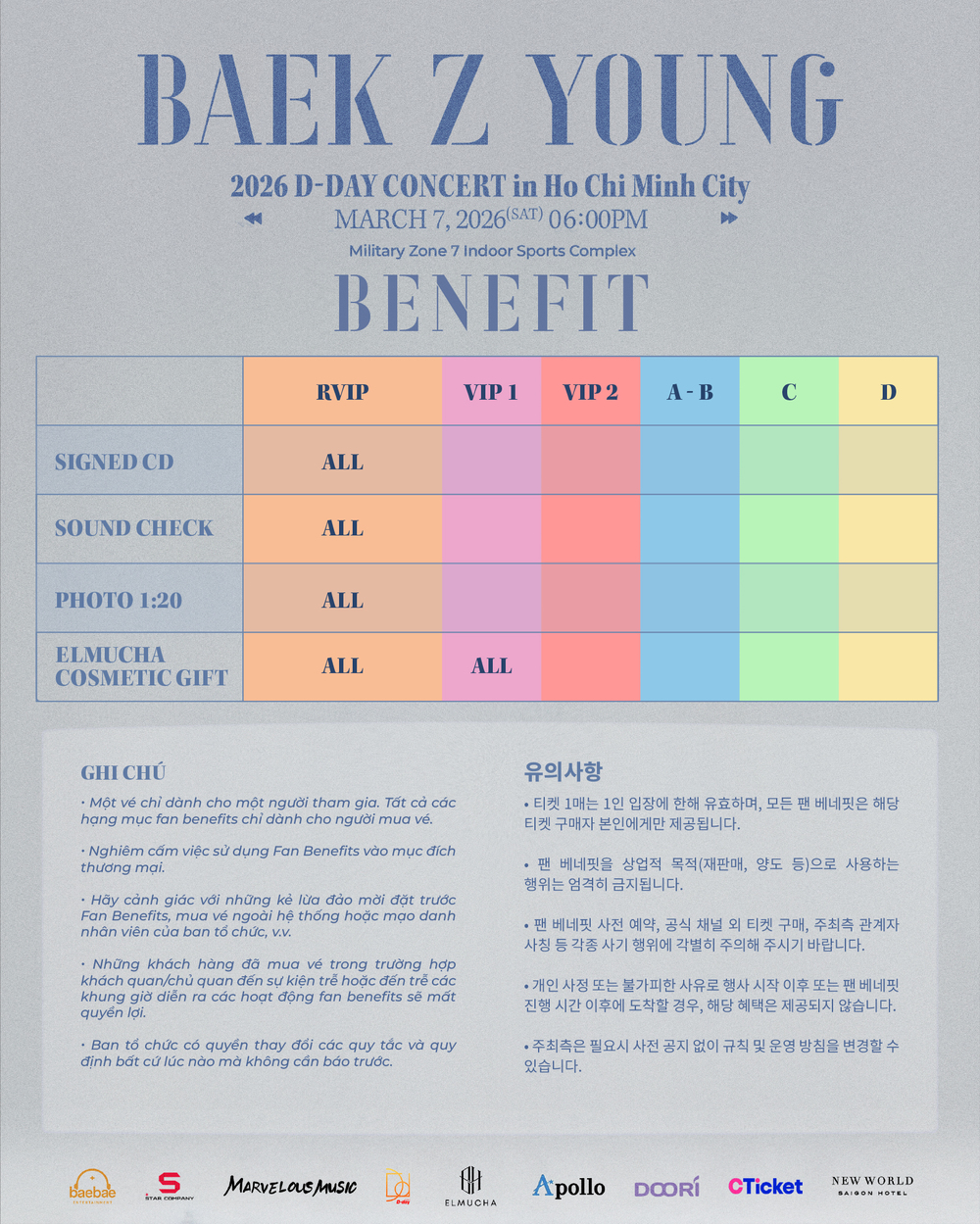 Sự kiện lần này không chỉ đánh dấu màn tái xuất được mong đợi của Baek Ji Young tại Việt Nam sau một thời gian dài, mà còn là cột mốc ý nghĩa trong hành trình kết nối âm nhạc giữa Hàn Quốc và Việt Nam. Với sự đầu tư nghiêm túc và tâm huyết từ nghệ sĩ cùng ban tổ chức, “Baek Z Young 2026 D-DAY Concert In Ho Chi Minh City” hứa hẹn sẽ trở thành một trong những đêm nhạc đáng nhớ nhất năm 2026, mang đến không gian âm nhạc giàu cảm xúc và những khoảnh khắc khó quên cho khán giả.