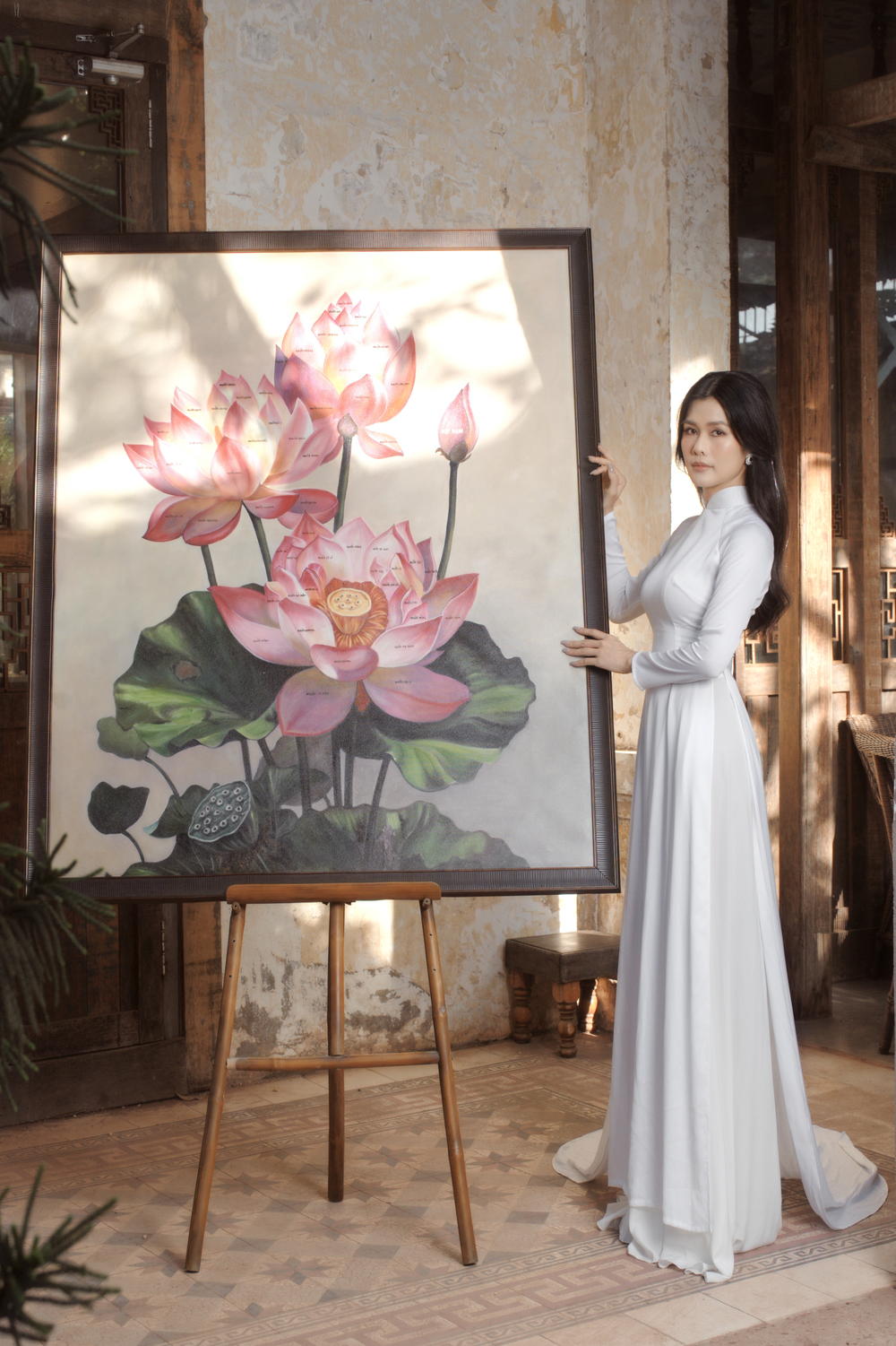 Điểm nhấn đặc biệt của bộ ảnh chính là bức tranh "Hoa sen 54 Dân tộc Việt Nam", tác phẩm trung tâm của toàn bộ dự án "54 Dân tộc Việt Nam". Trong từng khung hình, Phúc Anh như đang đối thoại với tác phẩm, với từng sắc màu, từng cánh sen được tạo nên từ bàn tay của 54 đại diện đến từ 54 dân tộc anh em trên khắp lãnh thổ Việt Nam.