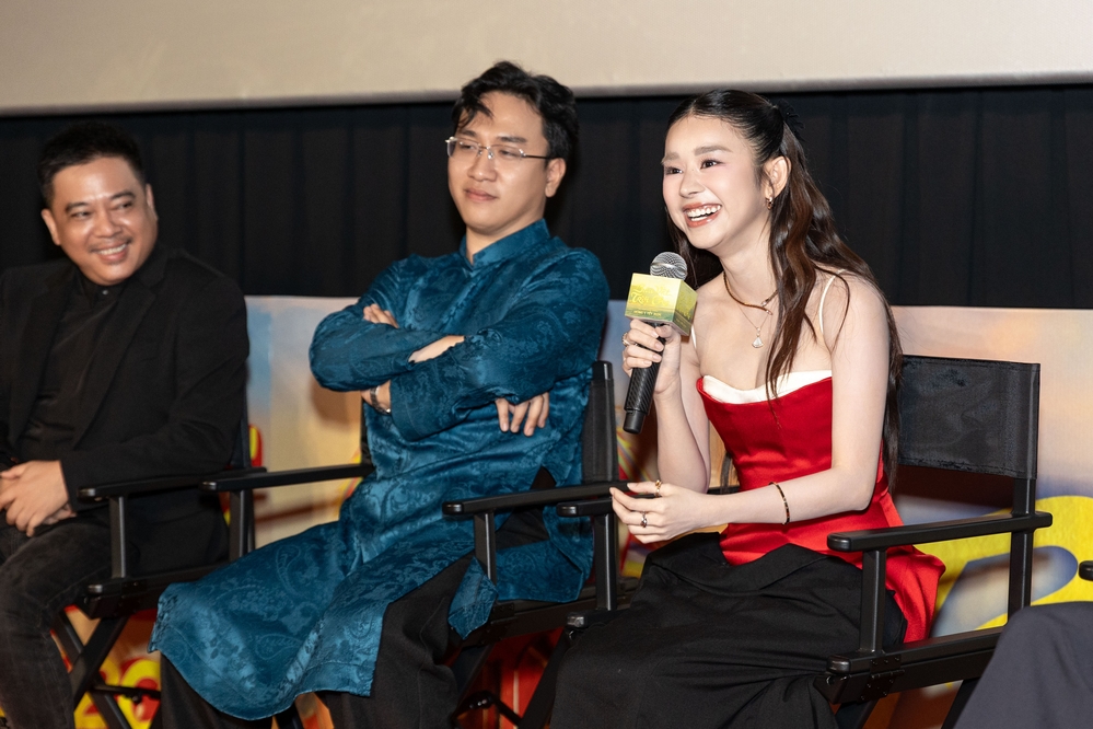 Khuyến Dương chia sẻ: "Em nghĩ em là người run nhất ở đây. Em cám ơn mọi người đã cho em cơ hội này, đặc biệt là anh Sơn. Đây là hành trình kỷ niệm với riêng em, em sẽ không bao giờ quên. Em muốn gửi lời cảm ơn đặc biệt đến anh La Thành - bạn diễn của em. Anh không chỉ dừng lại ở diễn cùng, mà còn chỉ dẫn rất cặn kẽ cho em trong những vai diễn".