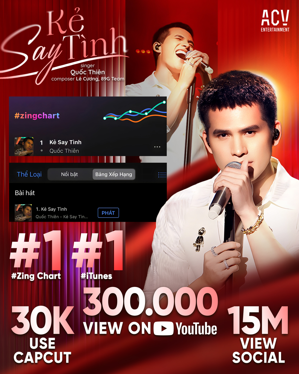 Live Concert SKYNote 2025 - The Reflection của ca sĩ Quốc Thiên vừa kết thúc thành công rực rỡ, nhưng dư âm của đêm nhạc vẫn đang tiếp tục lan tỏa mạnh mẽ. Đặc biệt, bản hit "Kẻ say tình" được ca sĩ Quốc Thiên trình diễn trong đêm nhạc đã trở thành tâm điểm.