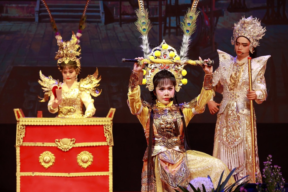 Sau tiết mục Dạ cổ hoài lang, Ngọc Bảo Vy gây ấn tượng khi xuất hiện trong trích đoạn Thần Nữ dâng Ngũ Linh Kỳ cùng với hai nghệ sĩ NSƯT Kim Tử Long, Trinh Trinh.